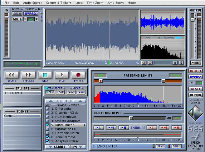 Intelligent Devices SES 4 (Speech Extraction System) is the most comprehensive and powerful set of voice enhancement tools available. Consisting of a direct-to-disk digital recorder and a shell supporting various real time modules, SES 4 is capable of extracting multiple voices from a variety of noise and background sounds